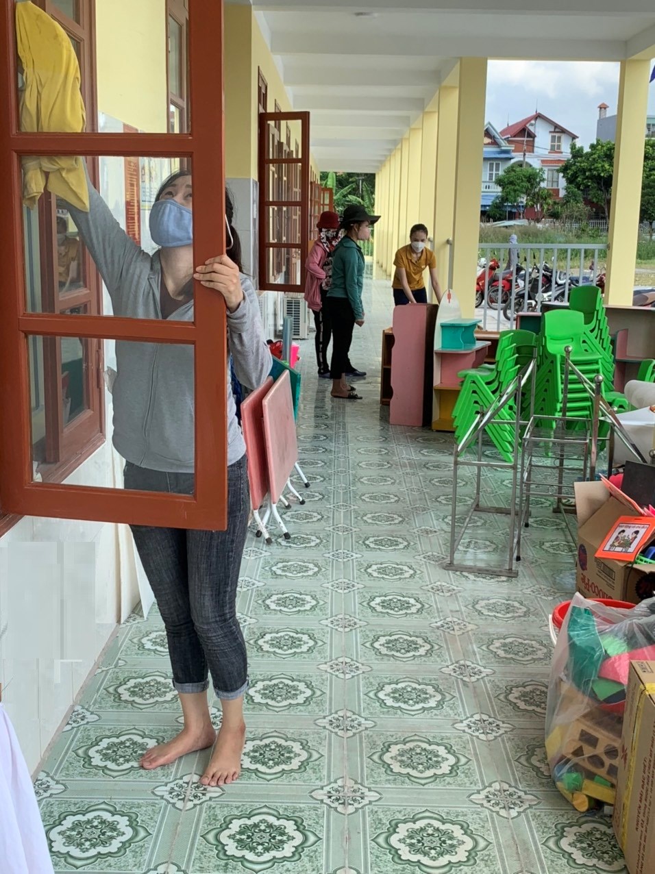 Để chuẩn bị chuyển 3 điểm học lẻ ra khu trường mới xây - khu chung cư Tân Nam, tập thể cán bộ, giáo viên, nhân viên trường Mầm non Mỹ Đức tiến hành lao động trong 2 ngày tổng vệ sinh lớp học, sân trường .., để chuẩn bị đón trẻ về học. Đặc biệt có sự giúp đỡ rất lớn từ các chú bộ đội của Tiểu đoàn 41.