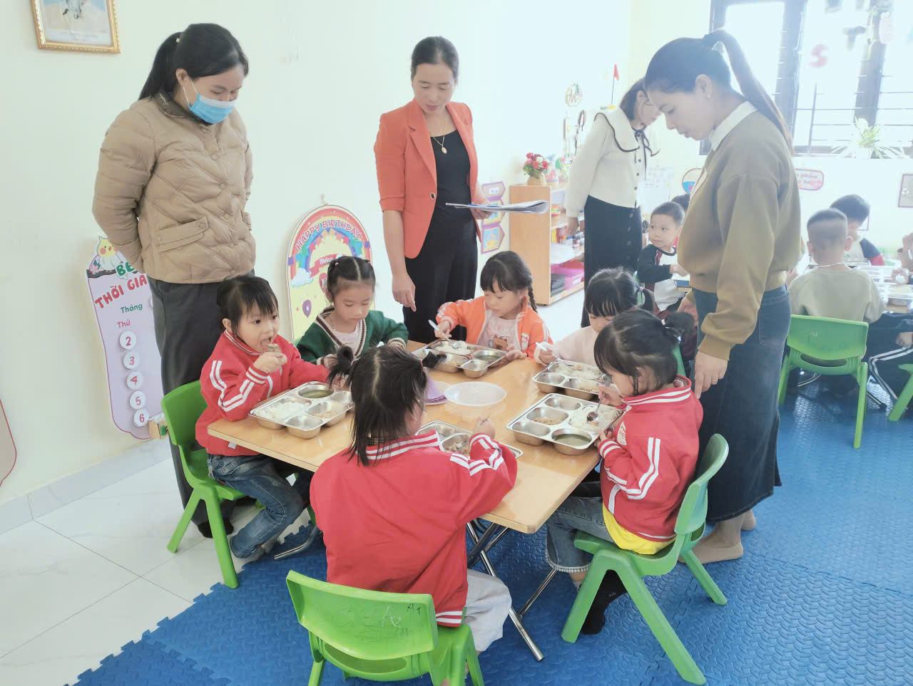 Giờ ăn là một trong những khoảng thời gian quan trọng trong ngày của trẻ mầm non, không chỉ giúp cung cấp dinh dưỡng mà còn là cơ hội để trẻ phát triển các kỹ năng xã hội và rèn luyện thói quen ăn uống lành mạnh. Do đó, việc giám sát giờ ăn của trẻ tại lớp ở trường mầm non cần được thực hiện kỹ lưỡng và chu đáo. Ngày 24/11/2025 đại diện phụ huynh lớp mẫu giáo 5 tuổi A1 thực hiện giám sát giờ ăn của trẻ tại lớp.