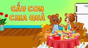 Gấu Con chỉ chờ có thế, vội bưng đĩa hoa quả bằng hai tay mời bố, mẹ, mời cả hai em nhỏ. Ơ kìa, thế phần của Gấu Con đâu? Nhìn Gấu Con lúng túng, Gấu Mẹ cũng phì cười, rồi hỏi: