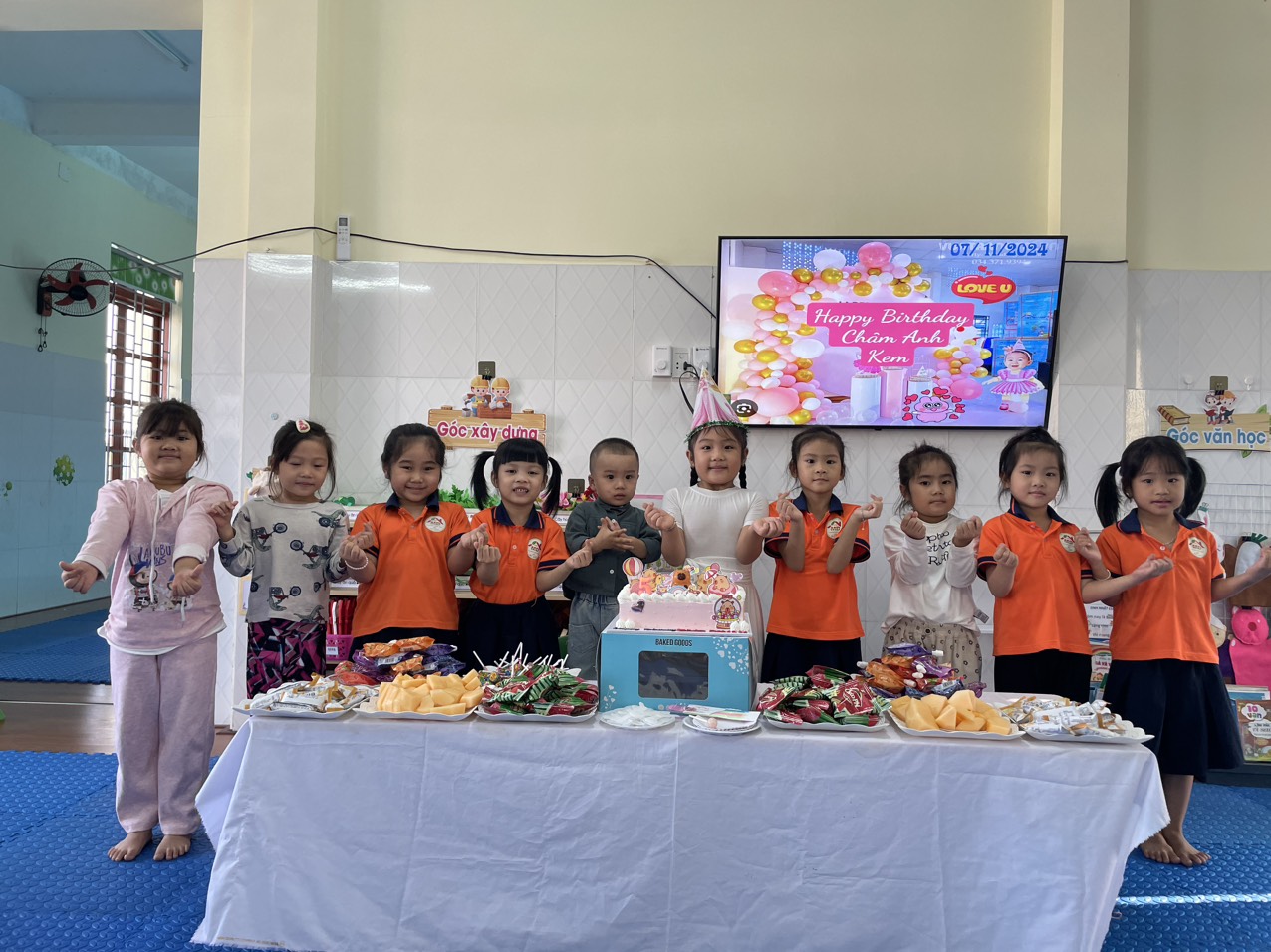 Các bé đã cùng nhau thổi nến, cắt bánh sinh nhật, cùng nhau ăn bánh và hát vang bài hát “Chúc mừng sinh nhật”. Những bức hình ngộ nghĩnh, đáng yêu sẽ là những kỷ niệm không thể nào quên của các bé trong những năm tháng tuổi thơ tại mái trường mầm non. Mong rằng các con sẽ mãi nhớ khoảnh khắc vui vẻ này.