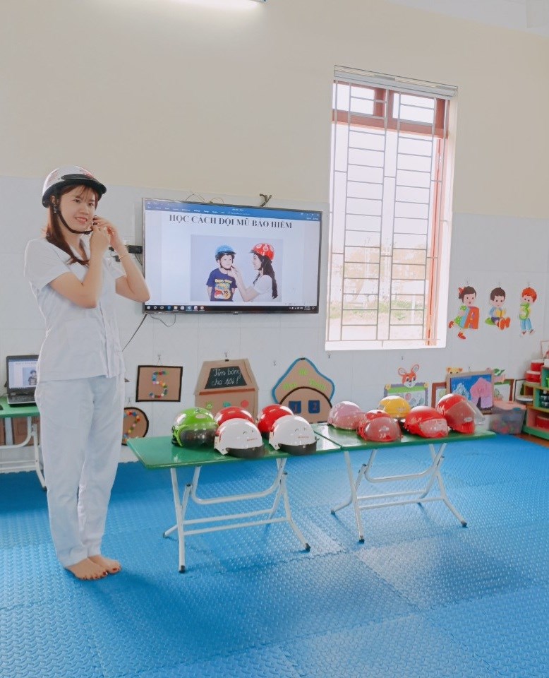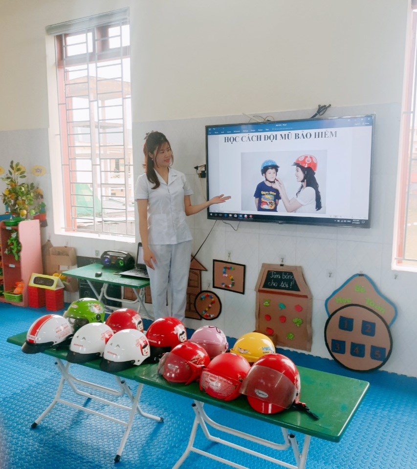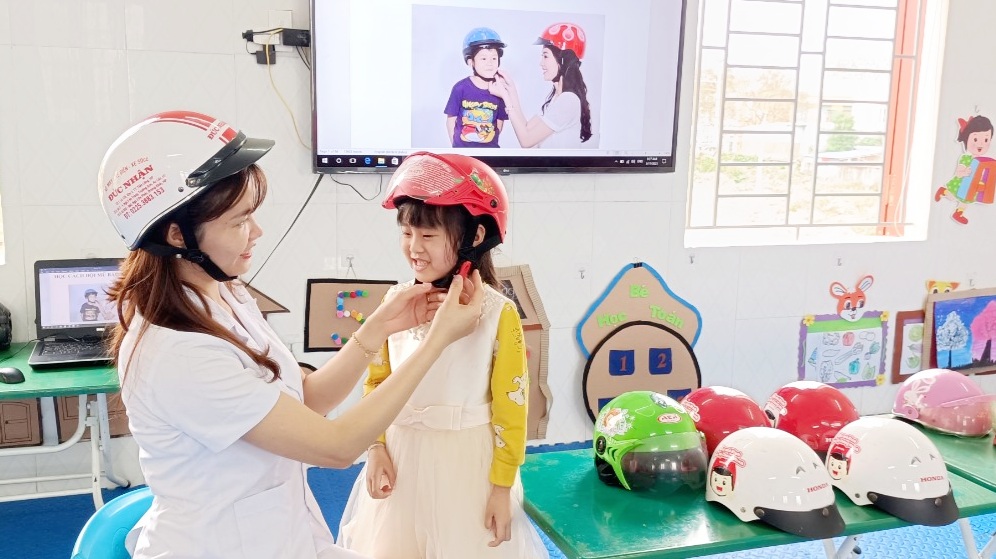 Dạy trẻ kỹ năng sống "Học cách đội mũ bảo hiểm"