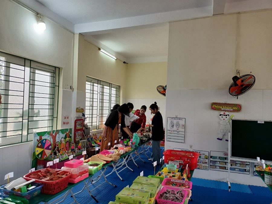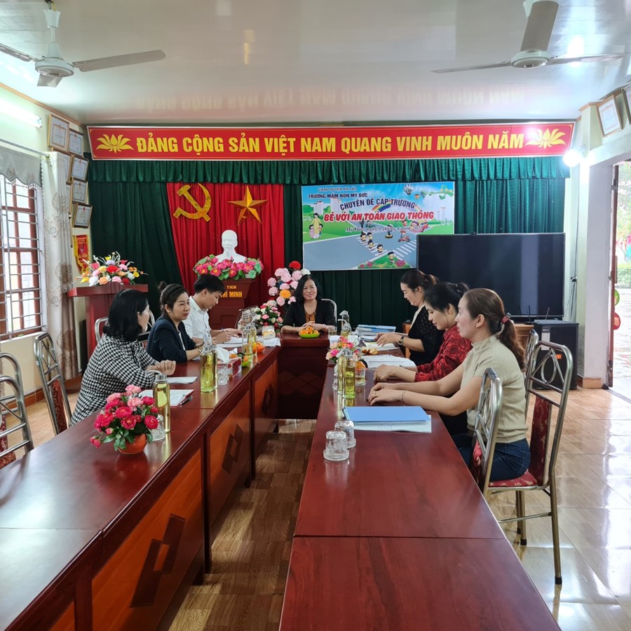 Thực hiện kế hoạch số 234/KH-PGD-MN ngày 10/10/2022 của Phòng Giáo dục và Đào tạo huyện An Lão về tổ chức hoạt động chuyên môn với giải pháp sáng tạo “Quản lý và sử dụng hiệu quả đồ dùng, đồ chơi, trang thiết bị dạy học tối thiểu trong các trường mầm non”. Hôm nay ngày 11/4/2023, Trường Mầm non Mỹ Đức vinh dự được đón đoàn kiểm tra của Phòng GD&ĐT Huyện An Lão kiểm tra và đánh giá giải pháp sáng tạo về quản lý và sử dụng hiệu quả đồ dùng, đồ chơi, trang thiết bị dạy học tối thiểu trong các trường mầm non. Đoàn kiểm tra gồm có: Bà Trương Thị An Phó trưởng phòng Giáo dục & Đào tạo, Bà Nguyễn Thị Dung chuyên viên PGD, Ông Vũ Văn Hiên Hiệu trưởng Trường MN Trường Thành, Bà Lê Thị Minh Hồng Hiệu trưởng Trường MN Sao Sáng, Bà Nguyễn Thị Huyền Hiệu trưởng Trường MN Trường Sơn.