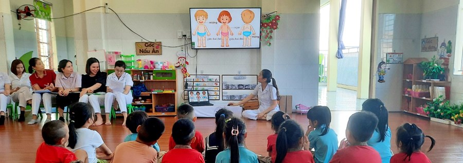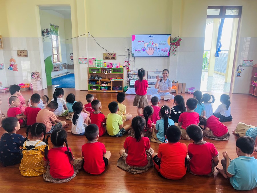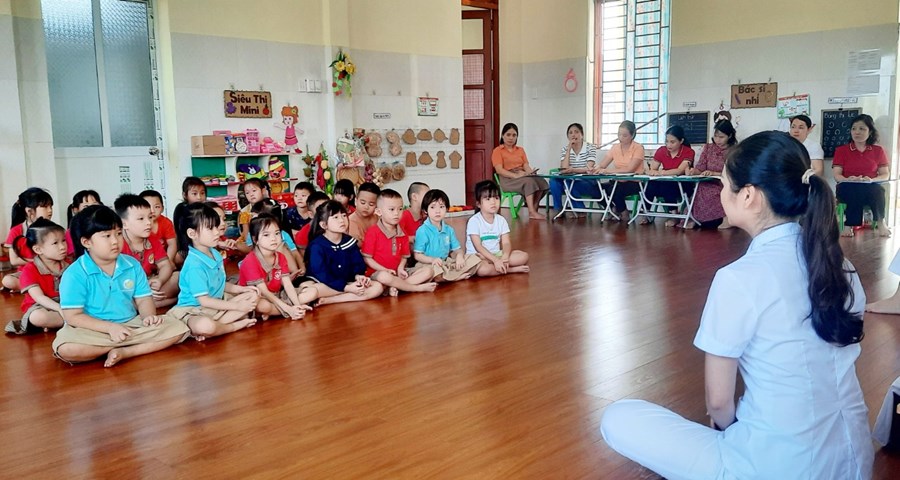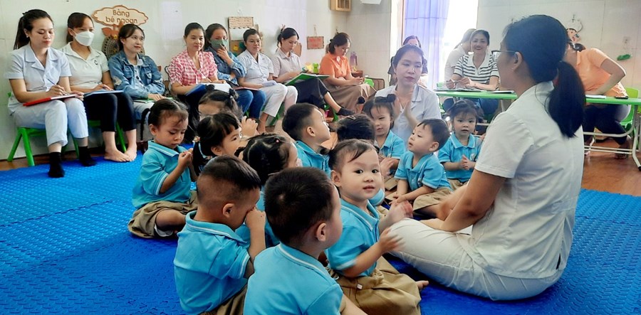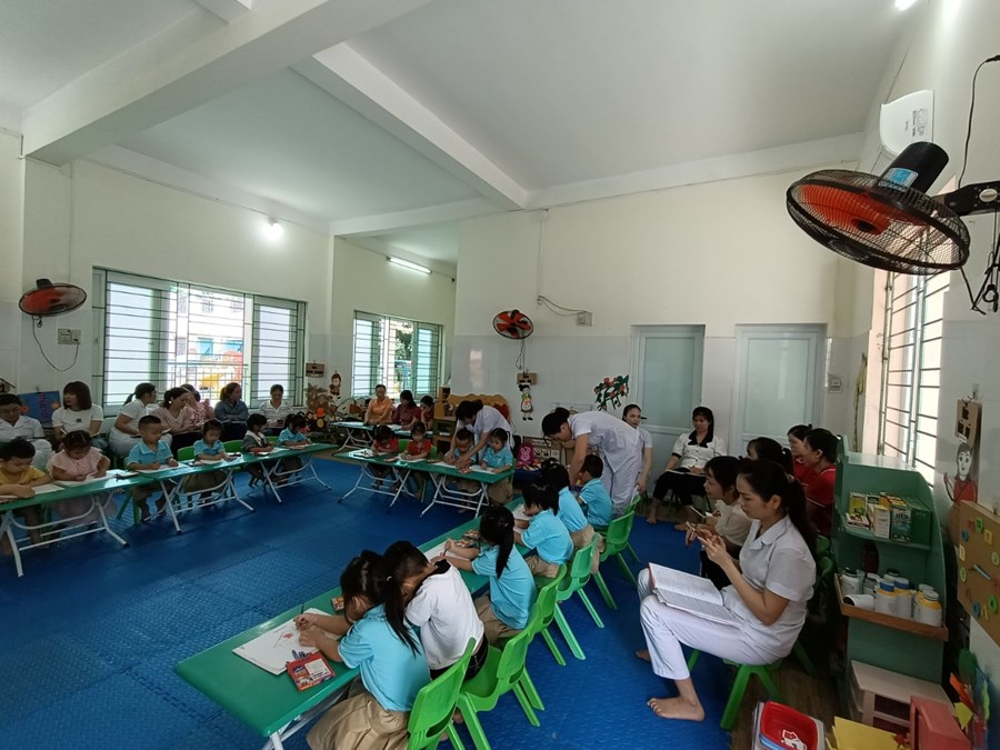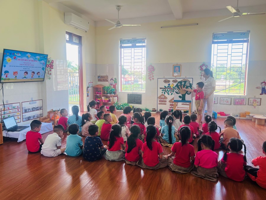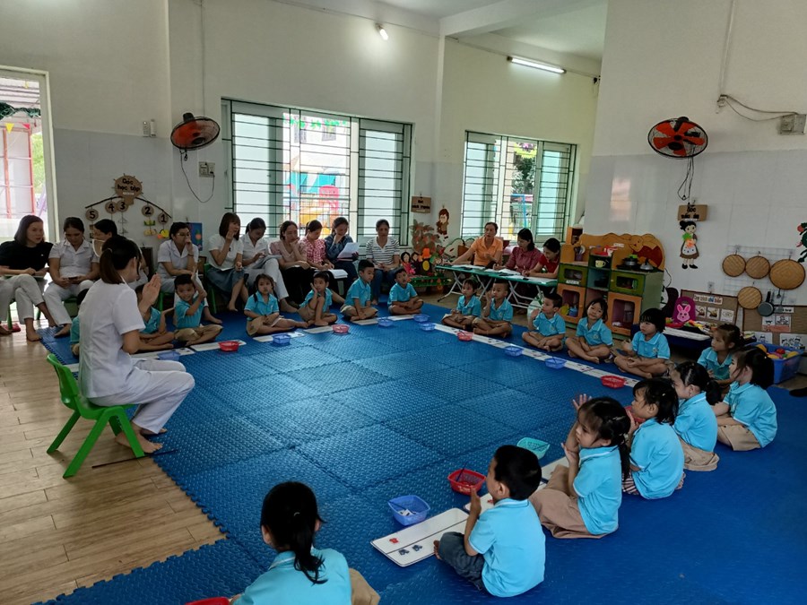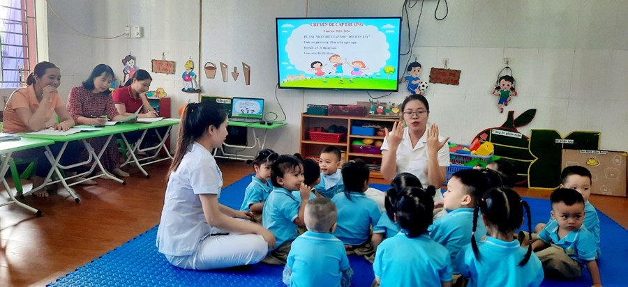 Đến dự chuyên đề có các đồng chí trong Ban giám hiệu và một số đồng chí giáo viên trong nhà trường. Các đồng chí giáo viên đã lựa chọn các hoạt động tổ chức trong chuyên đề với hình thức đa dạng, ứng dụng công nghệ thông tin trong giảng dạy, vận dụng phương pháp linh hoạt lấy trẻ làm trung tâm sáng tạo và hiệu quả. Trẻ hứng thú, tích cực, tự tin... khi tham gia các hoạt động.