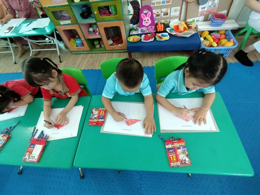 Giờ học: Tô màu ngôi nhà mái ngói (M) - Cô giáo Nguyễn Thị Hoà (3 tuổi)