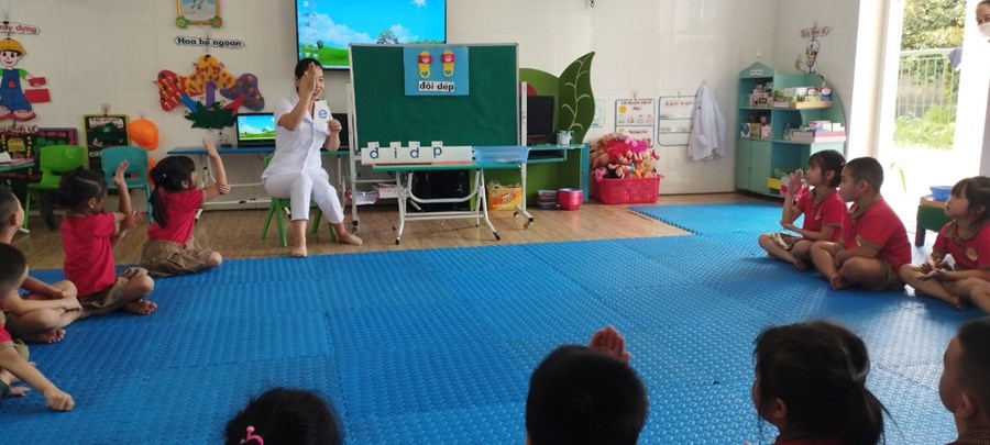 3. Đề tài: Làm quen chữ cái e, ê – đ/c Nguyễn Thùy Dung giáo viên lớp 5 tuổi A1