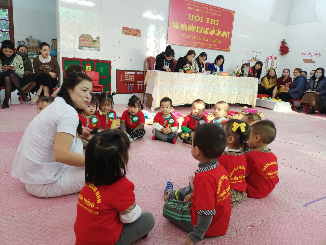 Về dự và chấm thi có đồng chí Nguyễn Thị Thu Hương - Phó trưởng phòng GD&ĐT phụ trách cấp học mầm non cùng các đồng chí là chuyên viên phòng GD&ĐT, các đồng chí là PHT trường mầm non trong toàn huyện.