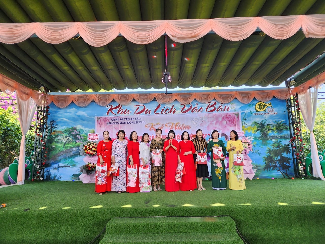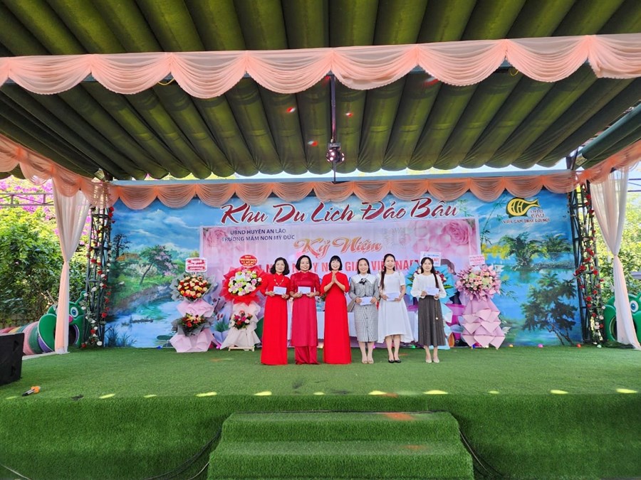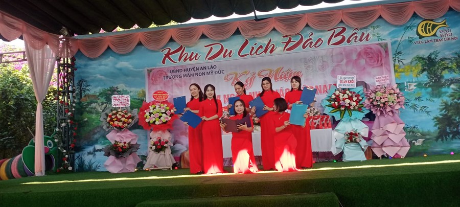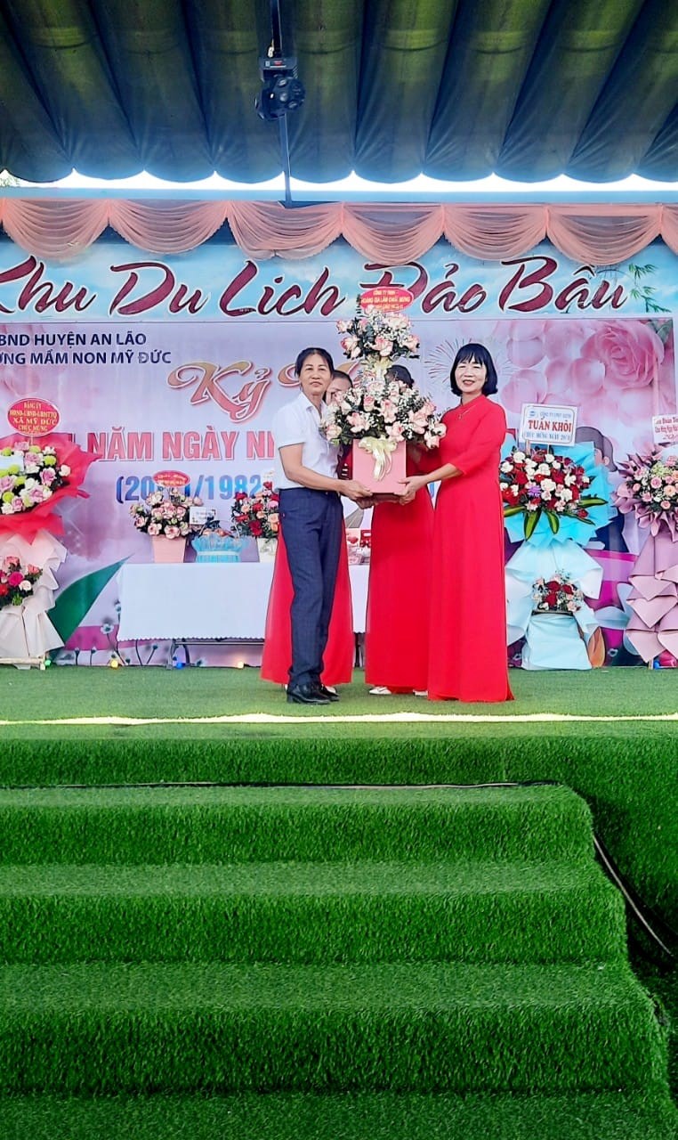 Buổi lễ Tri ân kết thúc với những đoá hoa tươi thắm thay lời chúc sức khoẻ, lời tri ân của các Quý vị đại biểu, Quý phụ huynh gửi tặng đến tập thể cán bộ giáo viên, nhân viên của trường mầm non Mỹ Đức.