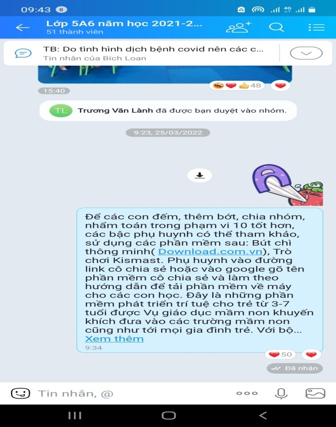 Thông qua đó, công tác quản lý của nhà trường thuận lợi, hoạt động thông tin của trường được truyền tải đến phụ huynh, học sinh một cách nhanh chóng. Phụ huynh cũng có thể theo dõi quá trình học của con mình, theo dõi các hoạt động dạy học của giáo viên. Đây là sự kết nối rất hiệu quả của nhà trường đến phụ huynh.