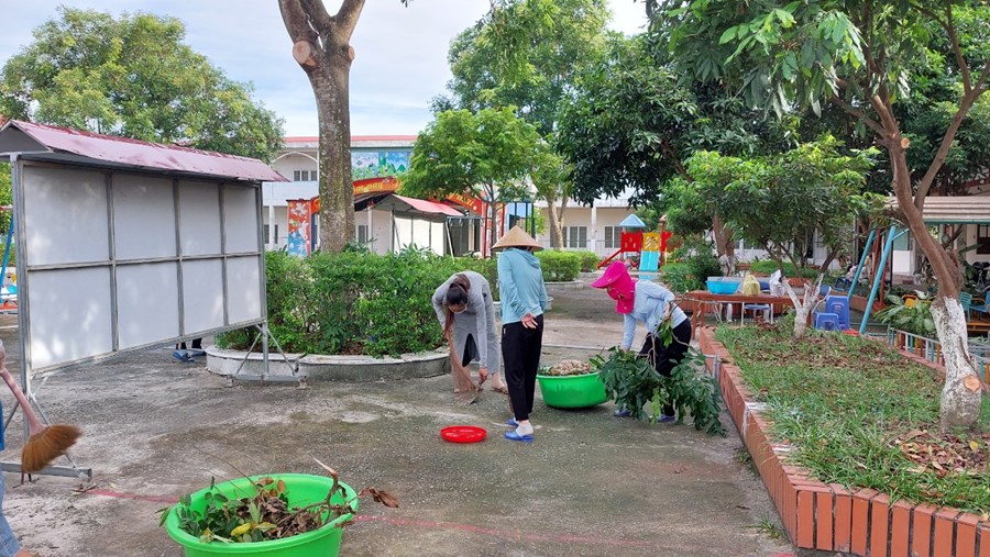 Theo sự chỉ đạo của Ban giám hiệu nhà trường, tất cả giáo viên Trường mầm non Mỹ Đức đã có mặt tại trường để tổng vệ sinh, chặt cành, tỉa cây, dọn cỏ....đảm bảo khuôn viên sạch sẽ, thoáng mát chuẩn bị cho năm học mới. Nhà trường còn nhận được sự giúp đỡ của các chú bộ đội Tiểu đoàn 82. Các chú bộ đội rất nhiệt tình, tiếp sức cho nhà trường củng cố cảnh quan môi trường giáo dục, giúp các cháu có môi trường học tập tốt nhất.