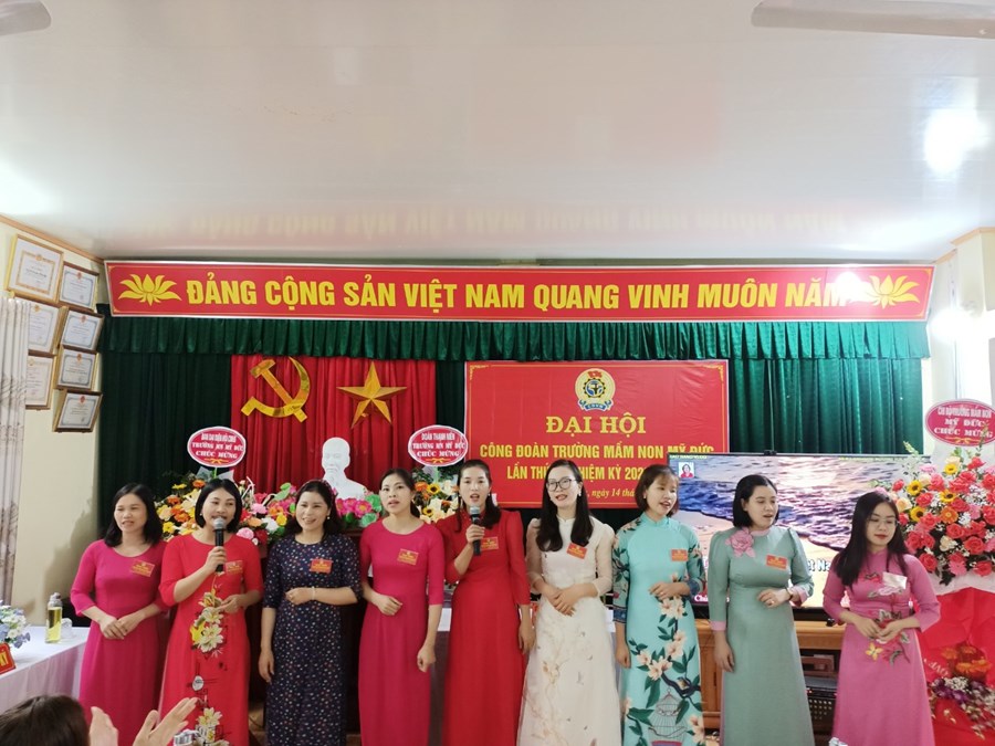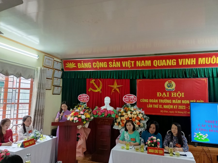 Báo cáo tại Đại hội, bà Nguyễn Thanh Thương – Chủ tịch Công đoàn nhà trường cho biết: “Công đoàn Trường Mầm non Mỹ Đức hiện có tổng số 55 công đoàn viên. Trong nhiệm kỳ qua, mặc dù có nhiều biến động phức tạp do ảnh hưởng của đại dịch Covid-19 đã tác động không nhỏ đến đời sống, việc làm, thu nhập, tâm tư, tình cảm của đại bộ phận công đoàn viên nói chung và hoạt động Công đoàn nói riêng song dưới sự lãnh đạo của Liên đoàn Lao động, Phòng Giáo dục và Đào tạo Huyện An Lão và Chi bộ nhà trường, Công đoàn nhà trường đã tổ chức thực hiện tốt các chỉ tiêu Nghị quyết đề ra.