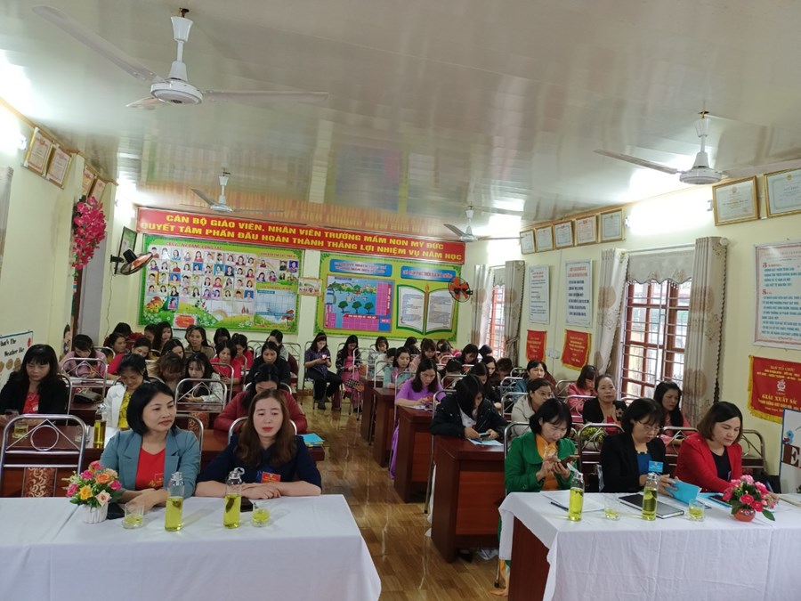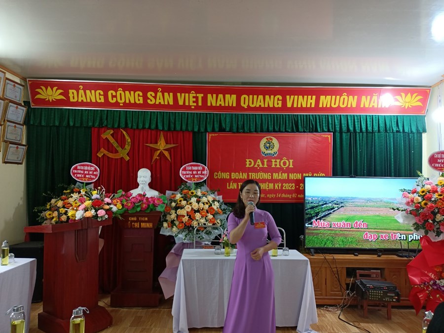 Cụ thể, 100% đoàn viên công đoàn được quán triệt, tiếp thu Nghị quyết Đại hội công đoàn các cấp, chấp hành nghiêm mọi chủ trương, đường lối của Đảng, chính sách pháp luật của Nhà nước, tích cực tham gia các cuộc vận động, phong trào thi đua do các cấp phát động; 100% đoàn viên không vi phạm đạo đức nhà giáo, tích cực đổi mới hình thức, phương pháp dạy học, nâng cao chất lượng chăm sóc, giáo dục trẻ; triển khai thực hiện có hiệu quả Chỉ thị số 05 của Bộ Chính trị về đẩy mạnh học tập và làm theo tư tưởng, đạo đức, phong cách Hồ Chí Minh, gắn với phong trào thi đua “Dạy tốt, học tốt” qua đó có nhiều đoàn viên đã vận dụng hiệu quả vào nhiệm vụ chuyên môn.
