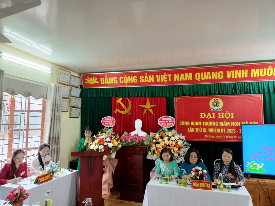 Phát biểu chỉ đạo tại Đại hội, đồng chí Phạm Thị Nga Chủ tịch LĐLĐ huyện An Lão đã biểu dương kết quả mà Công đoàn cơ sở Trường Mầm non Mỹ Đức đã đạt được trong thời gian qua. Đồng thời giao nhiệm vụ cho hoạt động Công đoàn nhà trường trong thực hiện những nhiệm vụ nhiệm kỳ 2023-2028 góp phần xây dựng tổ chức công đoàn vững mạnh, đưa sự nghiệp giáo dục của Huyện ngày càng phát triển.