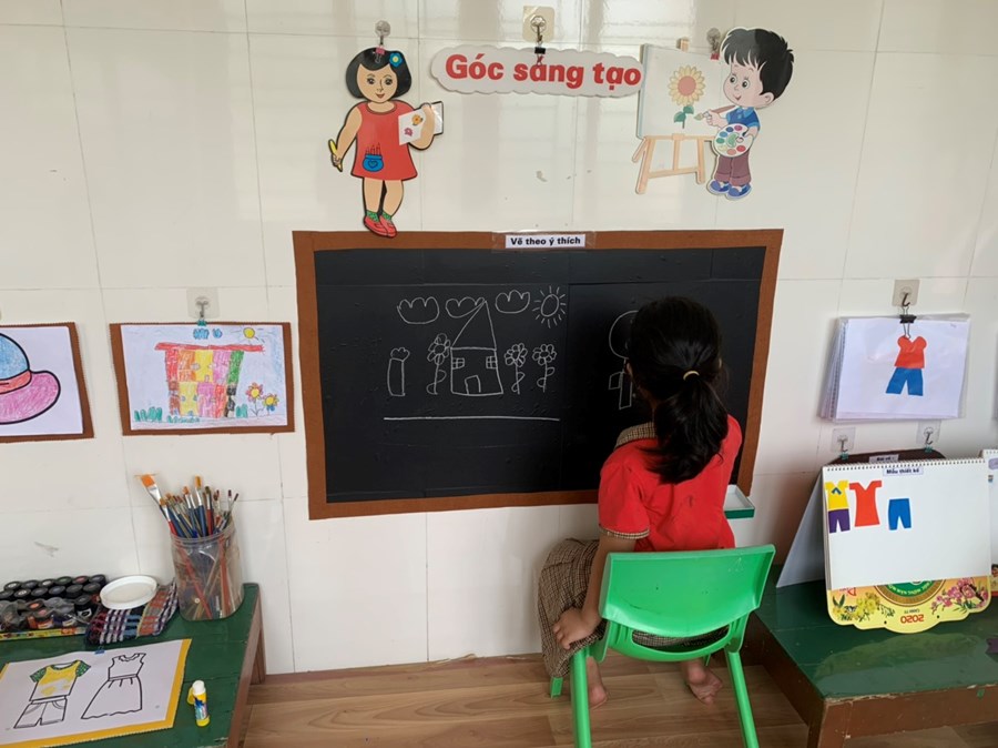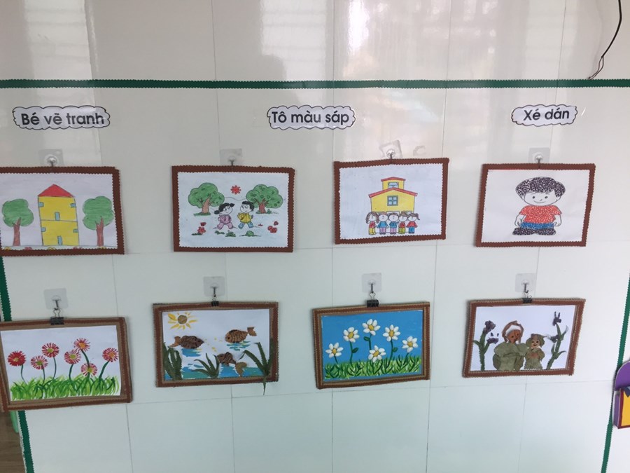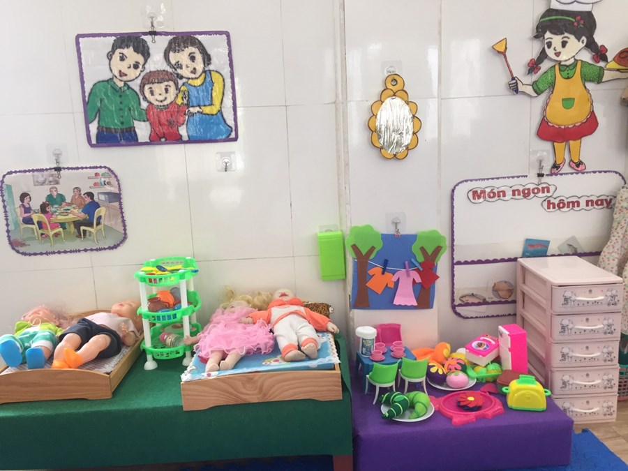 Chỉ trong một thời gian ngắn mà các lớp như được khoác lên mình một tấm áo mới. Các góc được bài trí đẹp đẽ, tao nhã, từ góc nghệ thuật nơi lưu giữ những sản phẩm đẹp của các con đến góc xây dựng, góc phân vai, góc thư viện, góc học tập, góc steam… đều được các lớp sắp xếp rất khoa học và ngăn nắp, mỗi lớp một vẻ, trang trí theo đậm đà bản sắc văn hóa dân tộc.