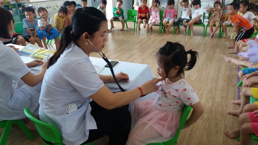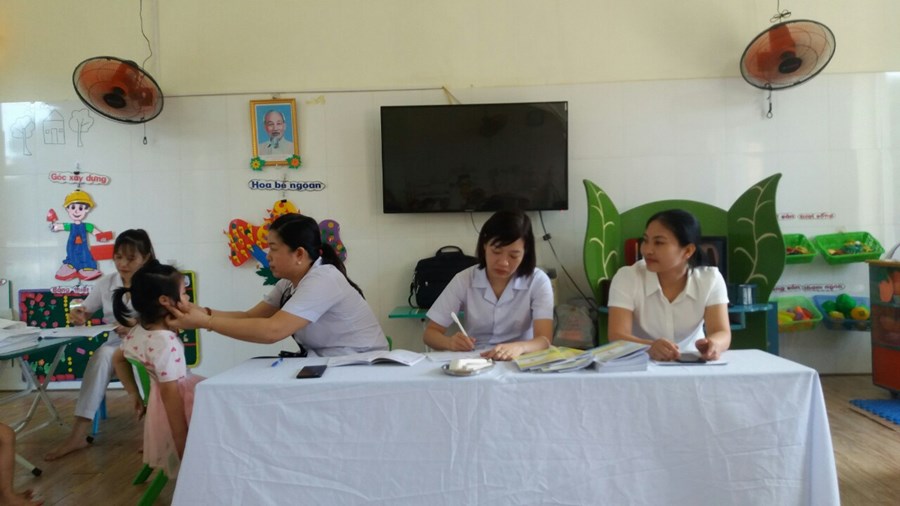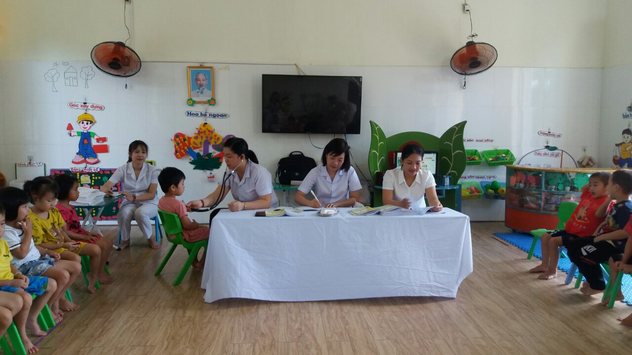 Trong các hoạt động của nhà trường, công tác chăm sóc sức khoẻ cho trẻ là một việc làm luôn được nhà trường đặc biệt quan tâm và chú trọng. Từ nhiều năm nay, việc tổ chức khám sức khoẻ định kỳ cho trẻ đã được nhà trường duy trì thành nề nếp thực hiện thường xuyên theo kế hoạch năm học. Ngày 04/10, nhà trường phối hợp với trạm y tế xã Mỹ Đức tổ chức khám sức khỏe định kỳ cho 100% các cháu trong nhà trường với các nội dung kiểm tra: Cân nặng, chiều cao, khám tai, mắt, mũi, họng, kiểm tra tim phổi và một số bệnh liên quan đến đường hô hấp, da liễu ...