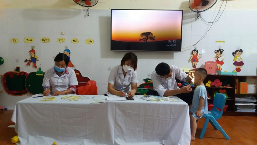 Kết quả kiểm tra sức khoẻ của trẻ đã được nhân viên y tế, nhà trường cùng giáo viên ghi chép cụ thể trong sổ theo dõi sức khỏe và được giáo viên các lớp thông báo đến phụ huynh, đặc biệt là một số trẻ mắc bệnh qua đó phụ huynh cùng phối hợp và có biện pháp điều trị kịp thời cho trẻ.