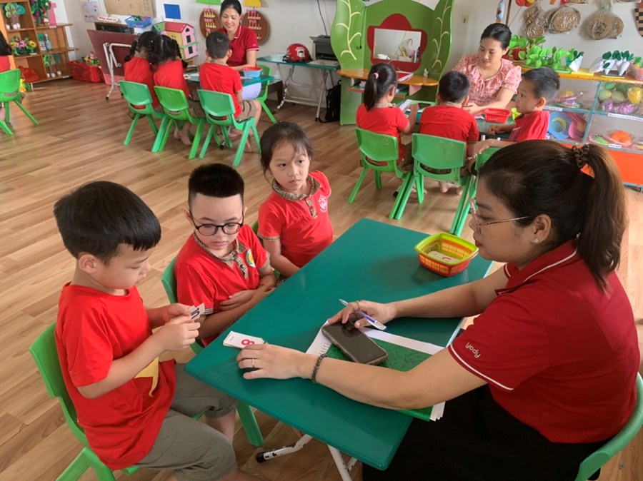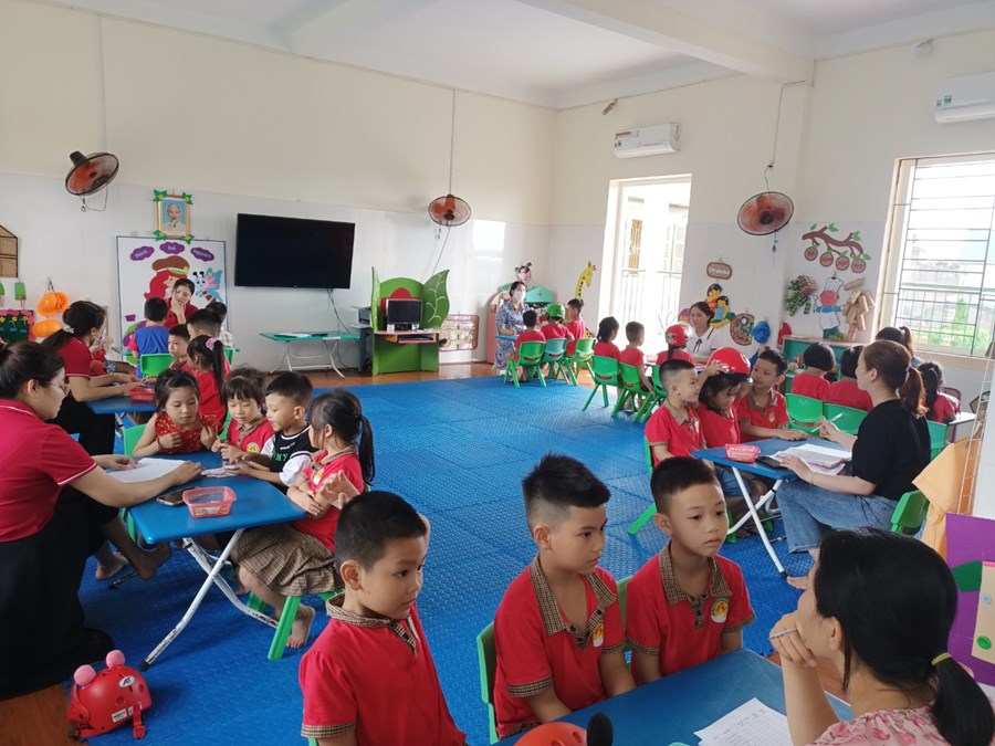 Quá trình kiểm tra đánh giá đã được thực hiện nghiêm túc trên 100% trẻ, các câu hỏi bám sát vào mục tiêu giáo dục của từng độ tuổi qua các lĩnh vực phát triển: Nhận thức, Ngôn ngữ, Thẩm mỹ, Thể chất, Tình cảm kỹ năng xã hội, hoạt động trải nghiệm thực tế và kỹ năng trong cuộc sống hàng ngày của trẻ.
