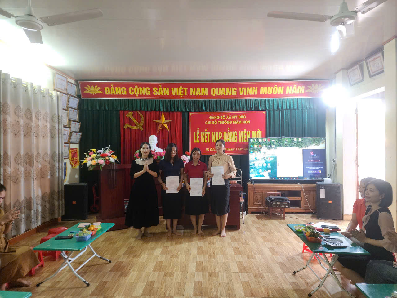 Lễ kết nạp được diễn ra trong không khí trang nghiêm, đúng trình tự, thủ tục kết nạp Đảng viên mới. Đứng trước cờ Đảng, cờ Tổ quốc và chân dung Chủ tịch Hồ Chí Minh, các đồng chí Nguyễn Thị Hưởng, Nguyễn Thị Mai Hương, Đào Thị Thuý đã đọc lời tuyên thệ nguyện trung thành với lý tưởng và mục tiêu cách mạng của Đảng, thực hiện nghiêm túc các nhiệm vụ của người Đảng viên, đóng góp tích cực vào việc xây dựng Đảng, xứng đáng là đảng viên của Đảng cộng sản Việt Nam.