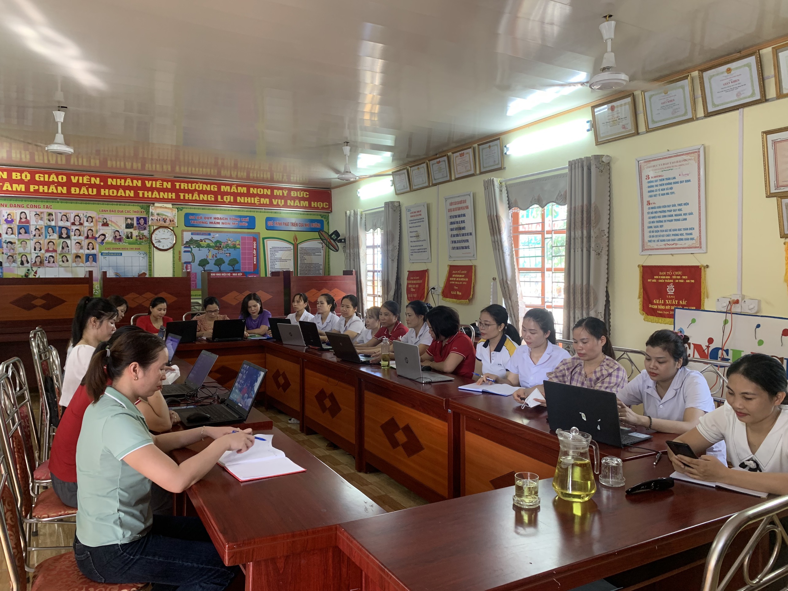 Sáng ngày 04/10/2023, trường MN Mỹ Đức đã phối hợp với Công ty viễn thông Viettel tổ chức tập huấn, nhằm nâng cao kỹ năng sử dụng chữ kỹ số cho CBQL, giáo viên và nhân viên nhà trường.