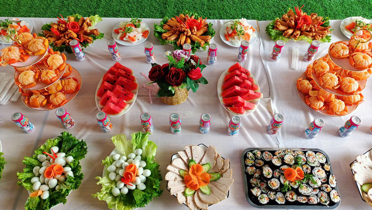 Để tổ chức tốt bữa tiệc Buffet cho trẻ, nhà trường đã phối hợp với ban đại diện phụ huynh, các cô cấp dưỡng lên thực đơn và lựa chọn món ăn, đảm bảo về chất lượng và định lượng. Các món ăn phải mới lạ khác với những món ăn hàng ngày của trẻ tại trường nhưng phải đạt tiêu chuẩn dinh dưỡng, vệ sinh và hợp khẩu vị của trẻ. Trẻ tỏ ra vô cùng thích thú với những món ăn hấp dẫn, bắt mắt và ngon miệng.