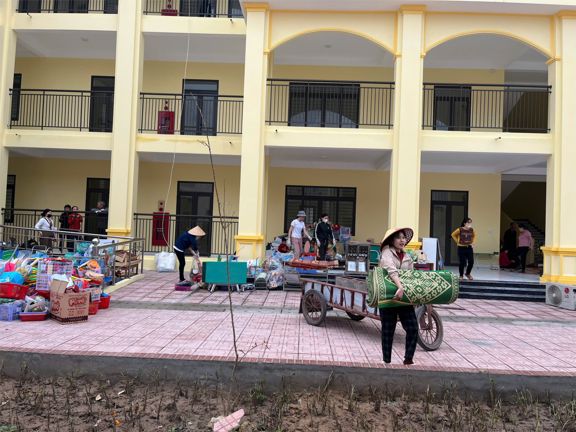 Với sự tham gia tích cực của phụ huynh, việc chuyển đồ dùng được thực hiện nhanh chóng và hiệu quả. Nhiều phụ huynh đã tự nguyện hỗ trợ vận chuyển bằng xe kéo của gia đình. Nhờ có sự phối hợp chặt chẽ, tất cả các trang thiết bị đã được chuyển đến đúng vị trí và đảm bảo an toàn. Khu trường mới được trang bị đầy đủ các thiết bị, tạo điều kiện tốt nhất cho trẻ học tập và vui chơi.
