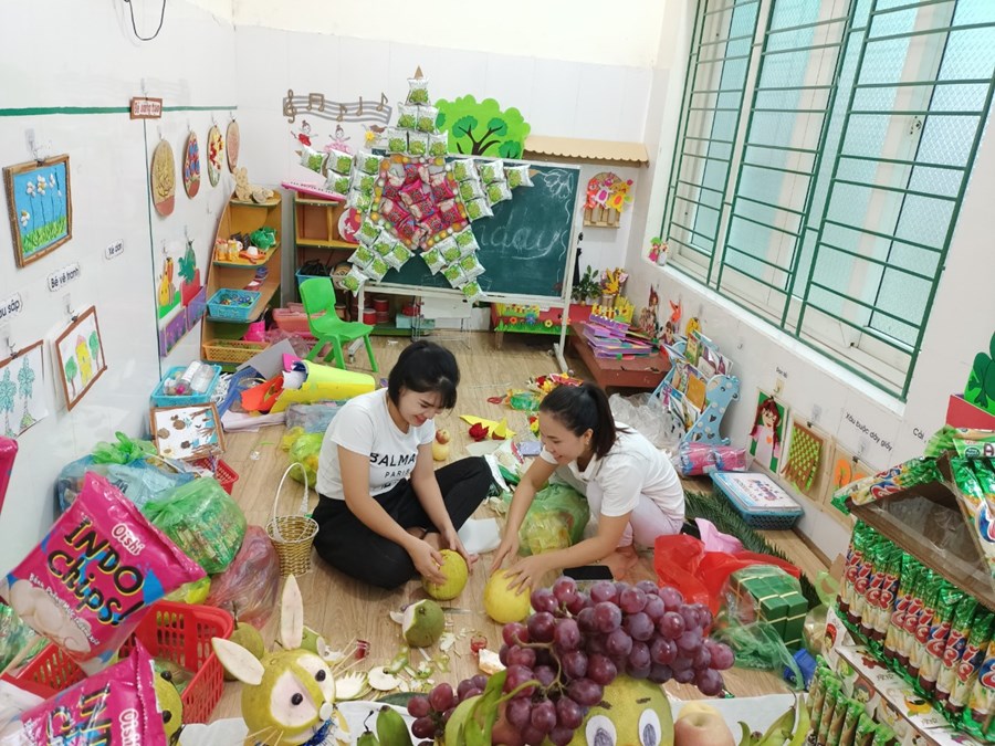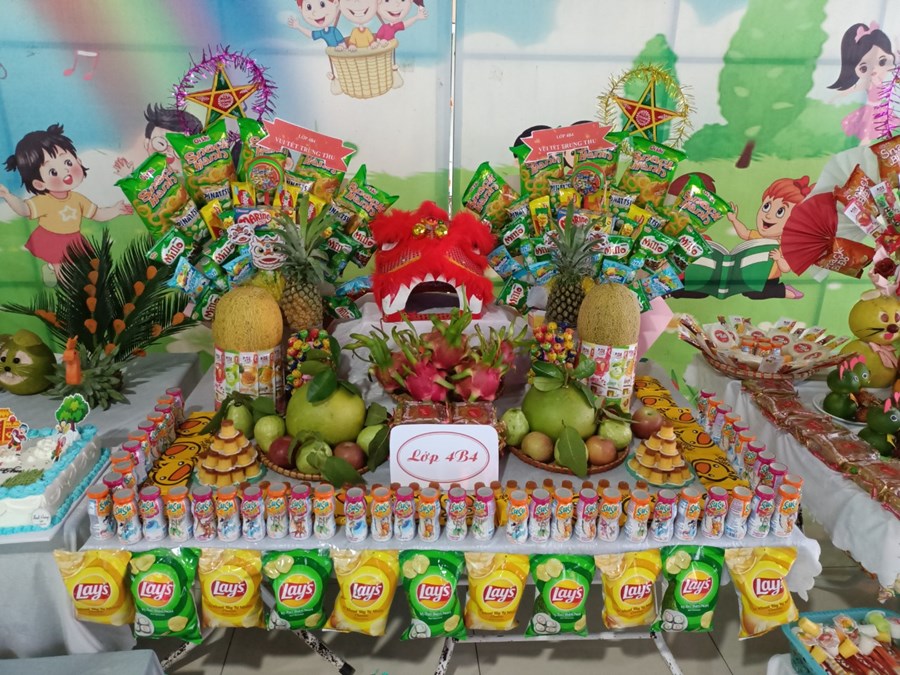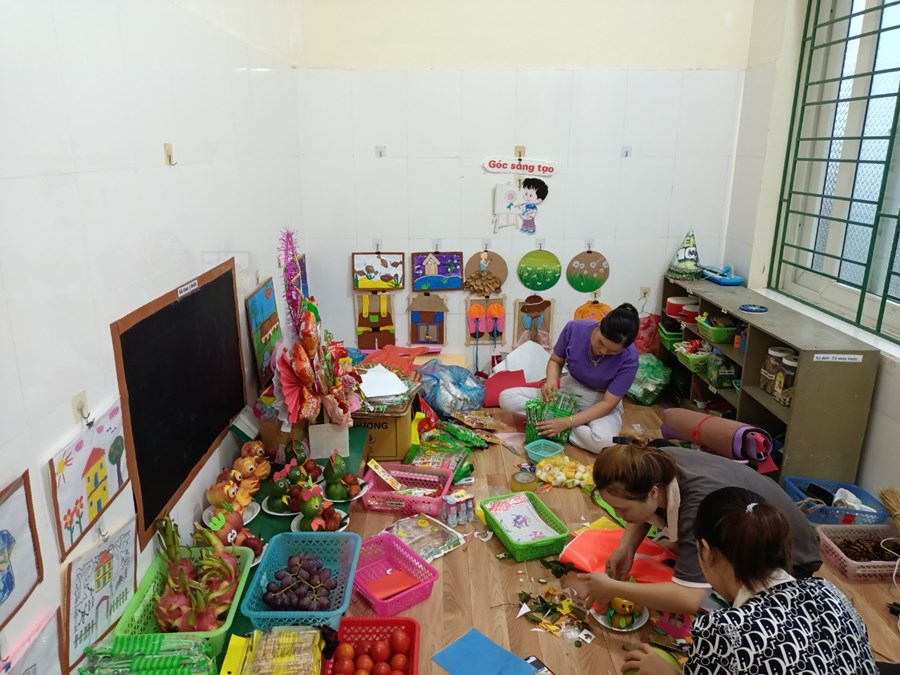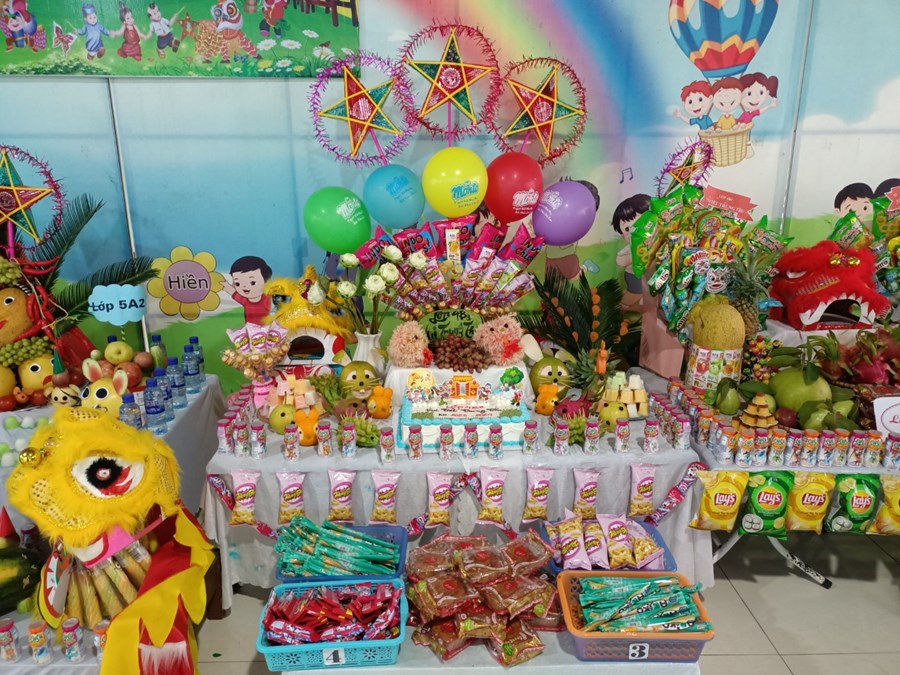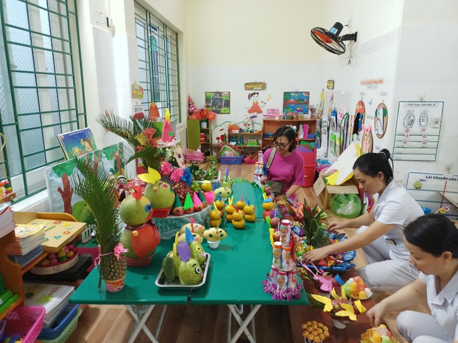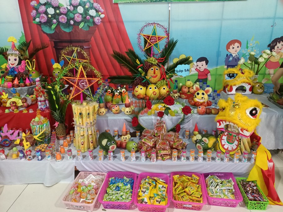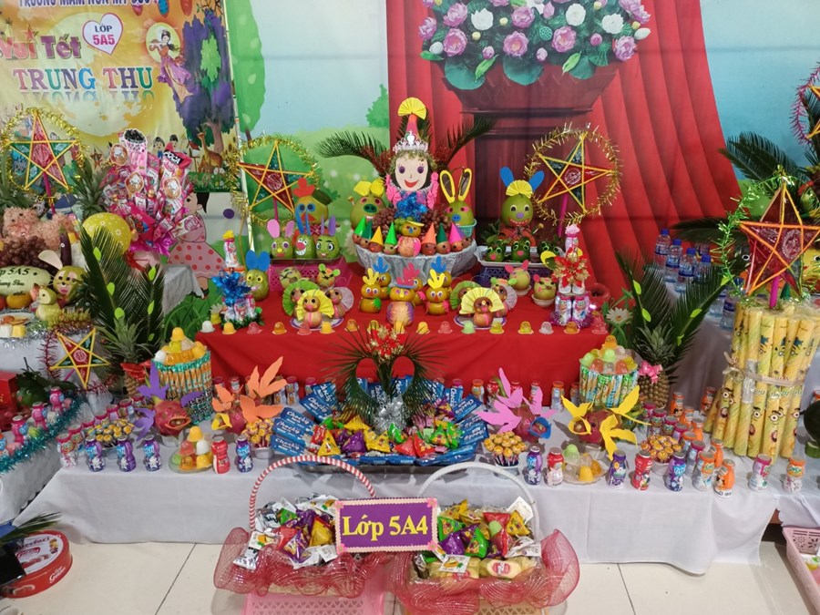 Với sự ủng hộ nhiệt tình của các bậc phụ huynh học sinh và tấm lòng yêu nghề mến trẻ của các cô giáo trong trường đã mang đến cho các bé một mùa Trung thu thật ý nghĩa, trọn vẹn niềm vui. Trong lớp học của bé không khí trung thu đã tưng bừng từ đầu tuần trước, các bé được cùng các cô giáo làm đèn lồng, đèn ông sao, tô màu mặt nạ trang trí lớp và chuẩn bị các tiết mục văn nghệ đặc sắc cùng với các ý tưởng bày mâm ngũ quả thật ngộ nghĩnh và hấp dẫn…