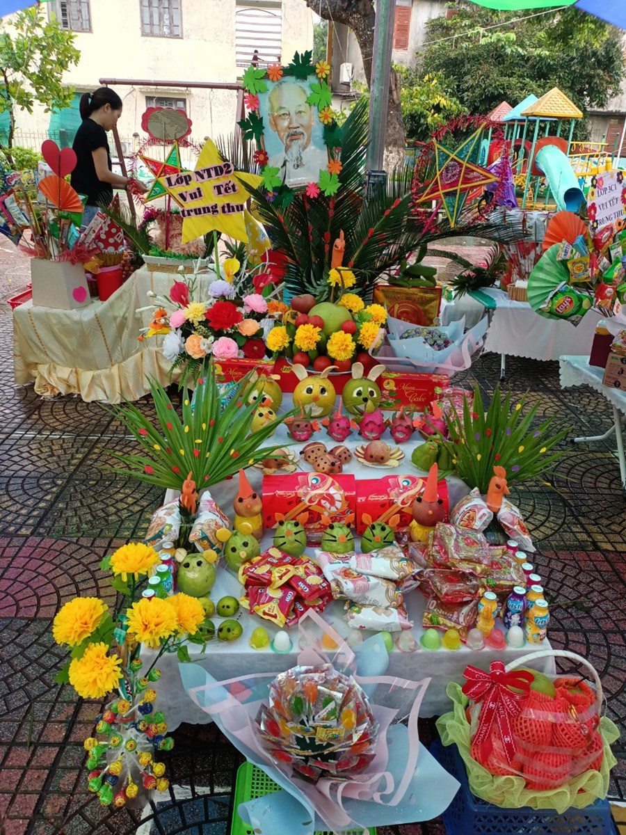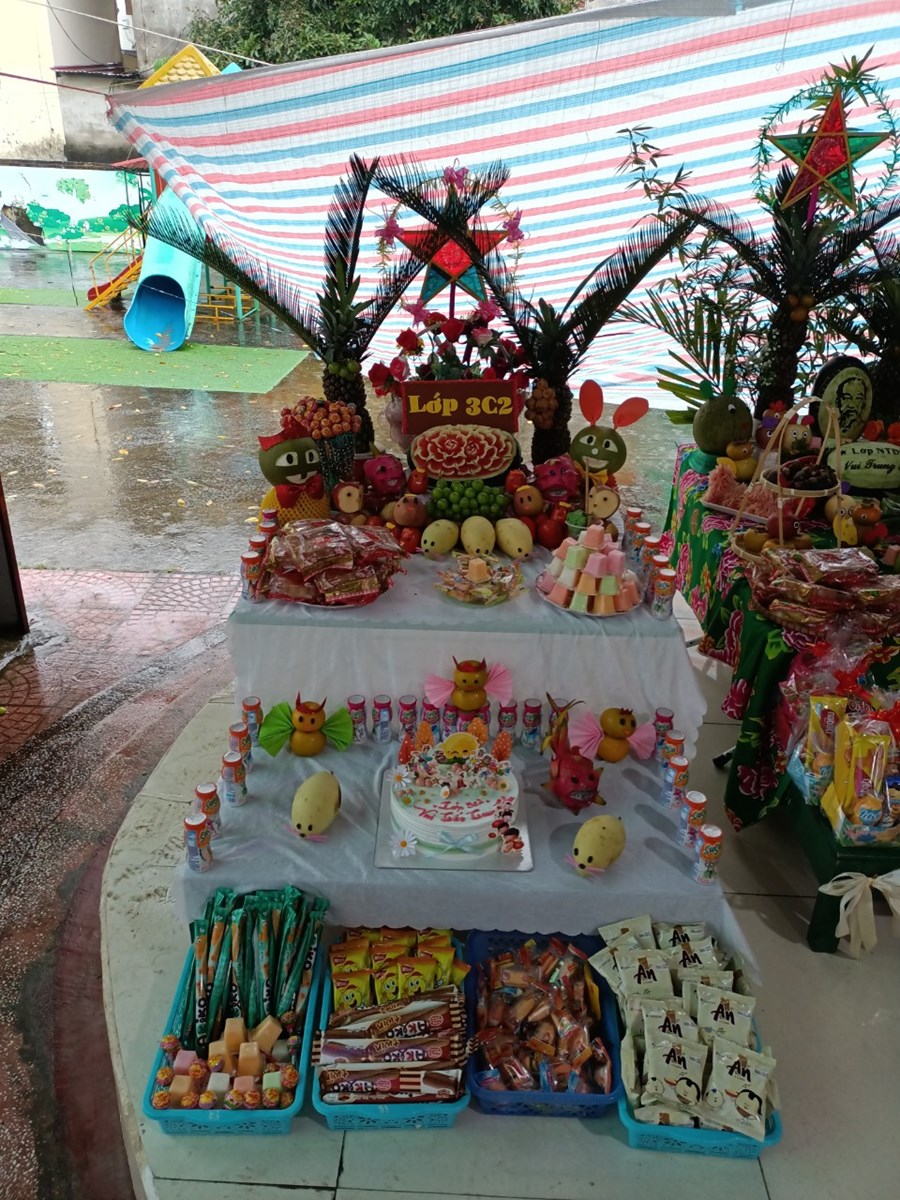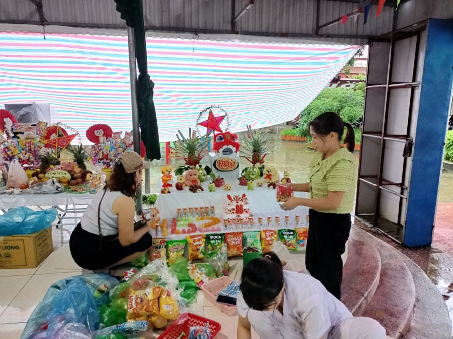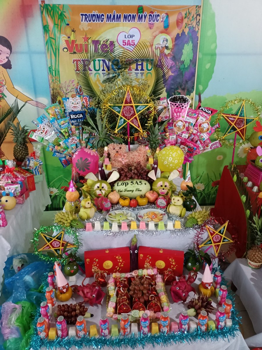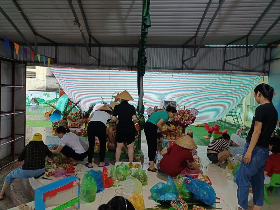 Đặc biệt, trong điều kiện thời tiết không thuận lợi, nhưng không thể ngăn được sự nhiệt tình của tất cả các bậc phụ huynh thông trưa trang trí mâm cỗ, góp phần tạo nên ngày tết Trung thu vô cùng vui vẻ, ấm áp cho các bé Trường mầm non Mỹ Đức.
