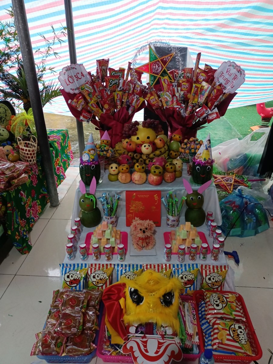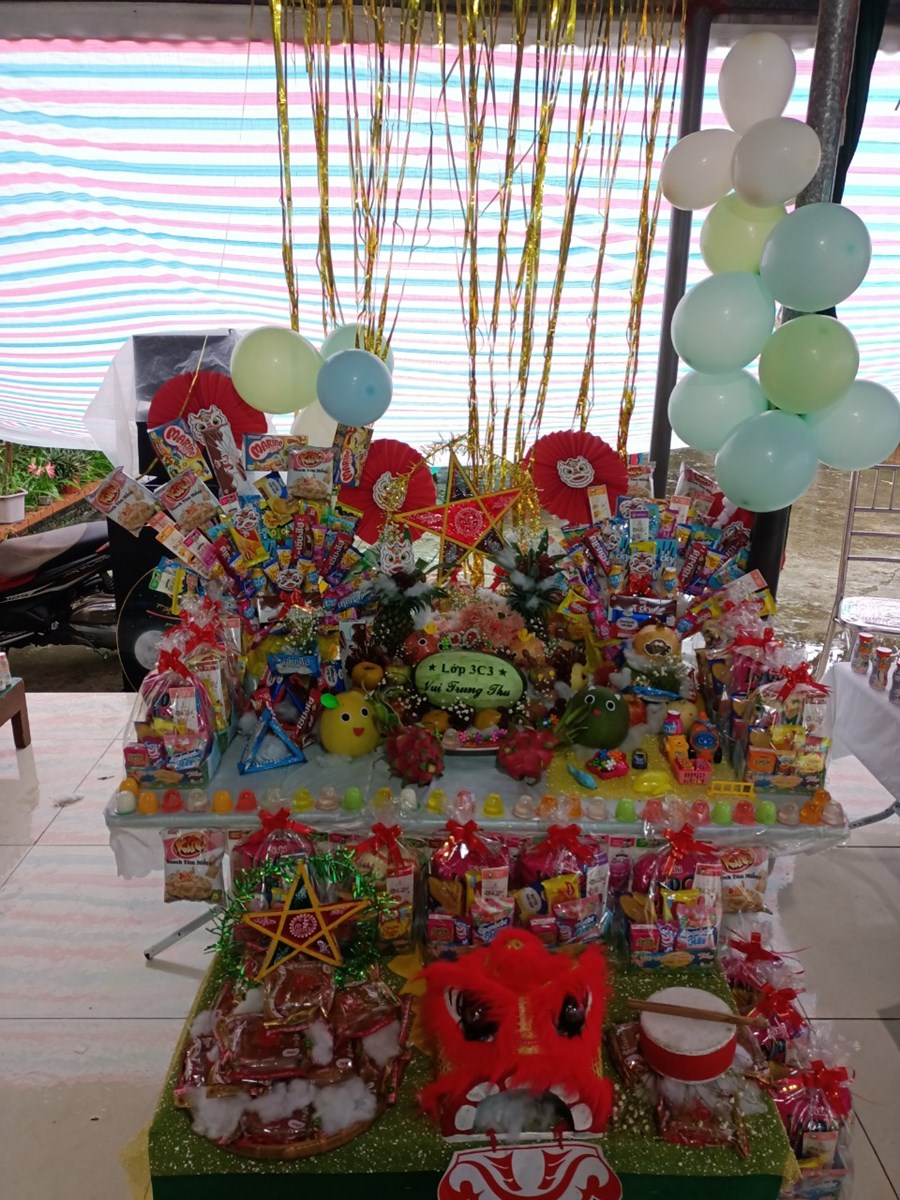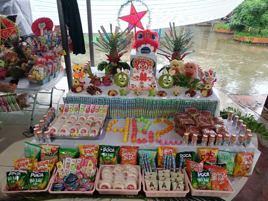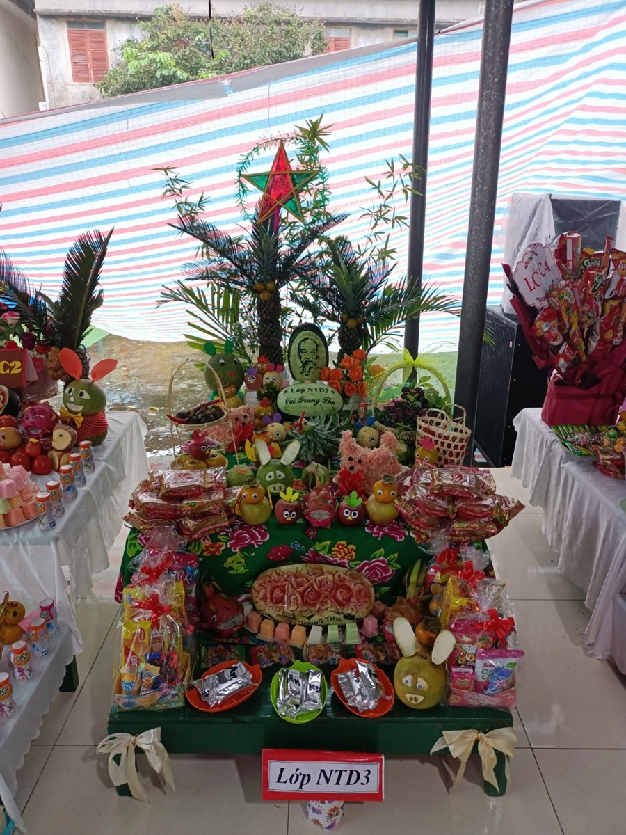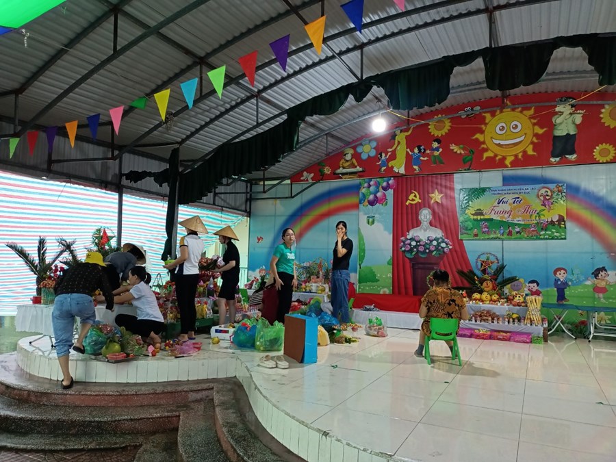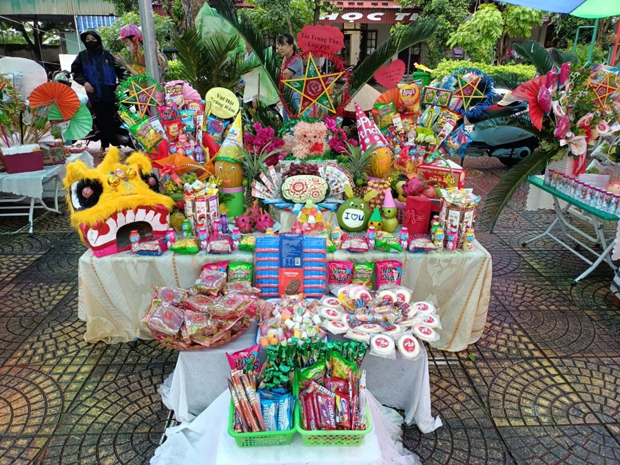 Đặc biệt, trong điều kiện thời tiết không thuận lợi, nhưng không thể ngăn được sự nhiệt tình của tất cả các bậc phụ huynh thông trưa trang trí mâm cỗ, góp phần tạo nên ngày tết Trung thu vô cùng vui vẻ, ấm áp cho các bé Trường mầm non Mỹ Đức.