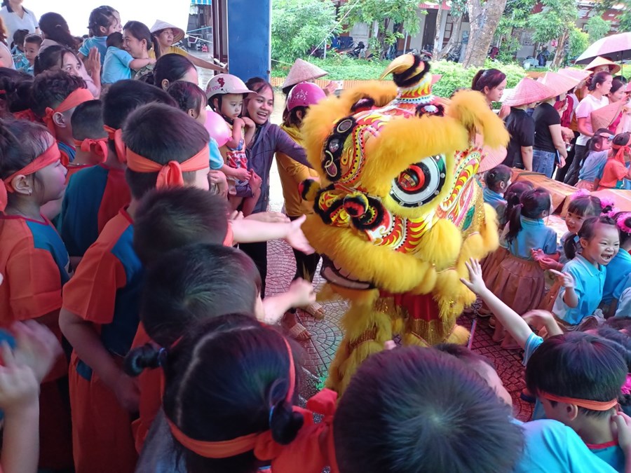 Sau 1 tuần cô và trẻ háo hức chuẩn bị, trung thu năm nay đã mang đến cho trẻ niềm phấn khởi bên cạnh người thân, gia đình và các cô giáo trong trường. Hòa lẫn trong tiếng trống hội rộn ràng, bé cùng các bạn hân hoan rước đèn theo sau điệu múa sư tử, cùng nhau phá cỗ, cùng nhau tham gia biểu diễn các tiết mục văn nghệ đặc sắc….