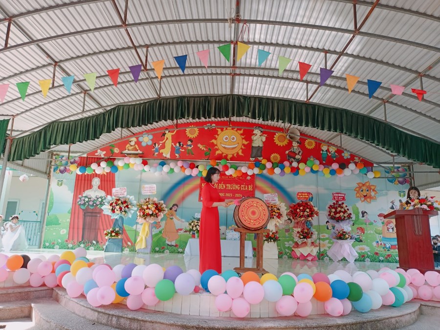 Thay mặt nhà trường, đồng chí Nguyễn Thị Hương - Bí thư chi bộ, Hiệu trưởng nhà trường lên đọc diễn văn khai giảng và đánh trống khai trường. Tiếng trống trường đã vang lên rộn rã, báo hiệu một năm học mới với nhiều thành công mới bắt đầu.