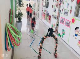 Cách chơi: đặt hai dải giấy màu ở hai bên tạo thành một đường đi ở giữa, đặt gôn ở cuối đường. Trẻ đứng ở vạch xuất phát, sau khi nghe hiệu lệnh của người hướng dẫn sẽ dùng tay lăn bóng trong đường đi cho đến khi bóng về đến gôn.