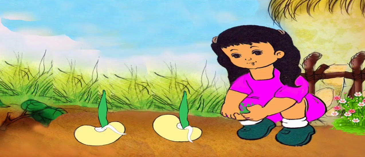 Gieo hạt: cho trẻ từ từ ngồi xuống, 2 tay vẫy sát mặt đất làm động tac gieo hạt.